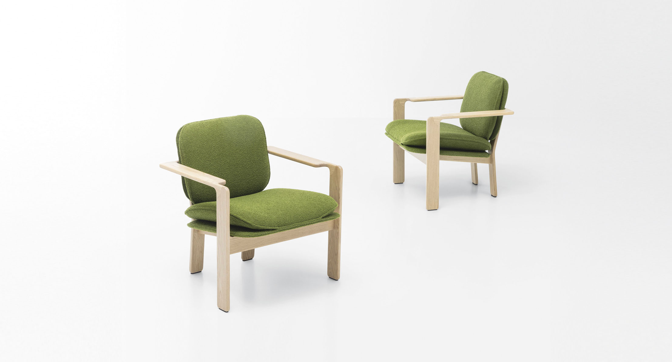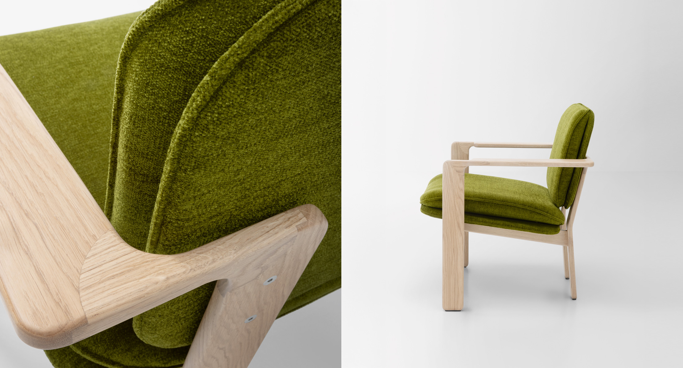 Berni, seat and back padding Whim WH001, structure dyed oak wood