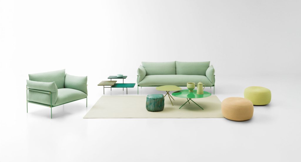 Kabà 系列还包括一个双人沙发、模块组合沙发和一个坐凳。