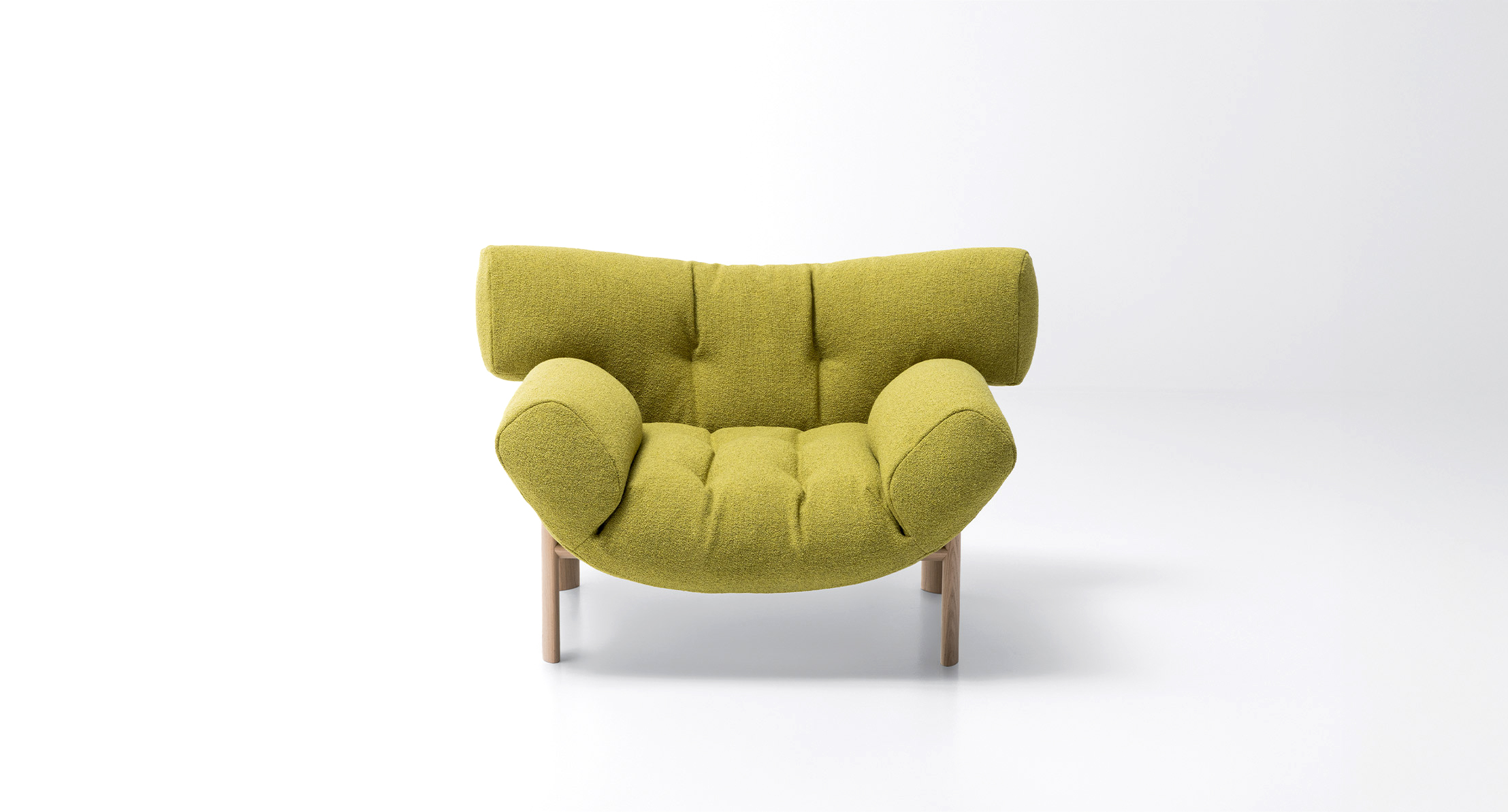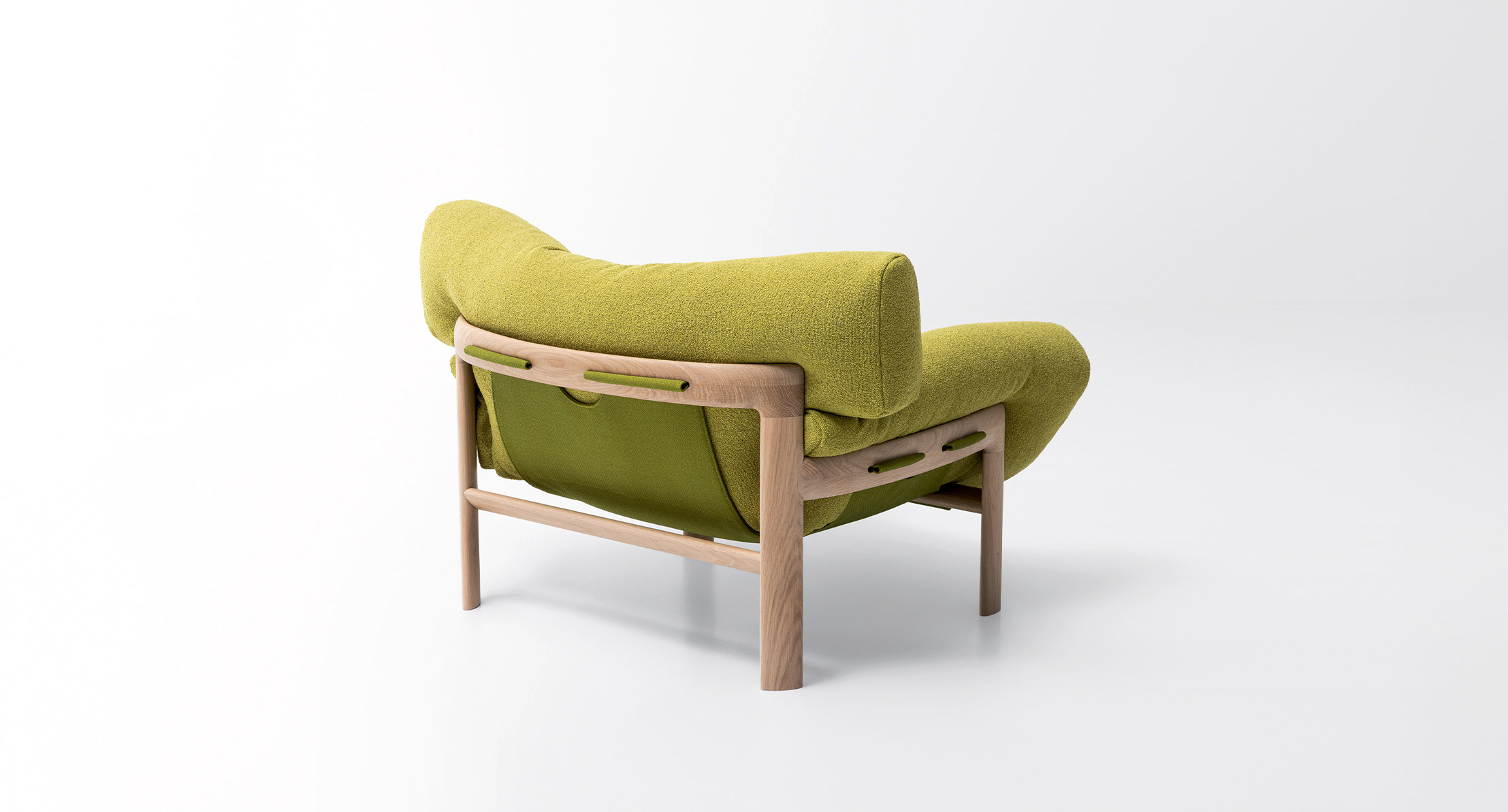 Légère armchair in Saint Briac SBR15 and Piqué PQA2R32, structure in natural oak wood LE007
