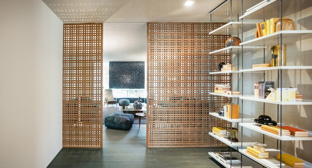 用于固定至天花板的钢板配有Mano Lucida 饰面木质纤维板,用于闭合包覆钢板。