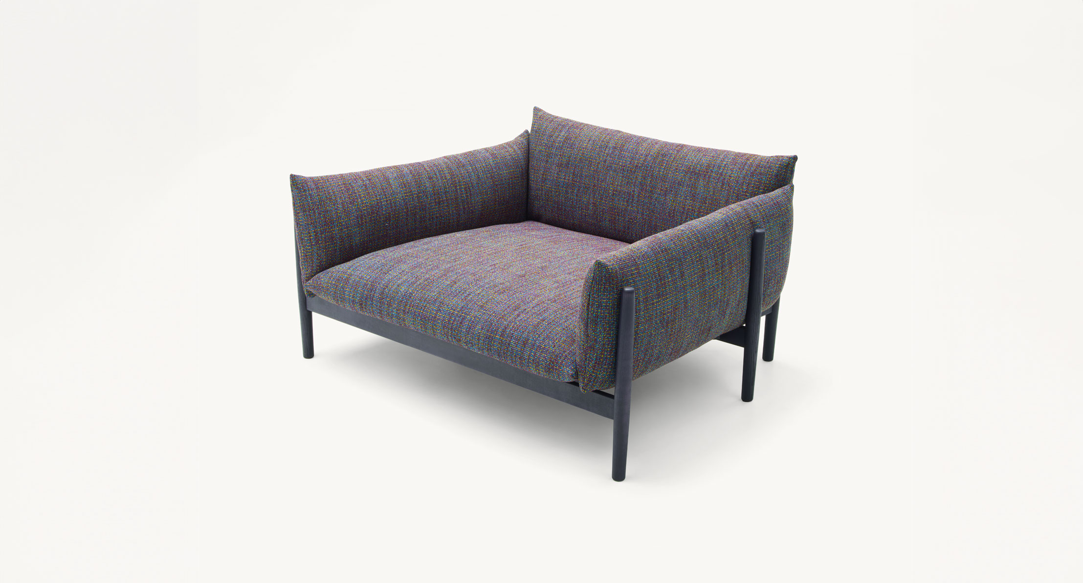 双人位及三人位沙发、坐垫,带可视木质框架。 Tapio 系列还包括单人沙发及茶几。