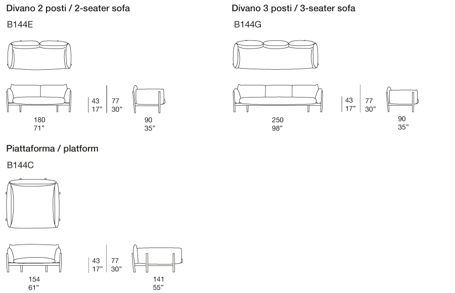 内部框架:涂漆钢质; 座椅配有松紧带。 可见框架: Mano Opaca 饰面包覆白蜡木实木。 带塑料垫片。 填充:耐压差异化膨胀聚氨酯; 聚酯纤维及聚酰胺固定泡沫罩 软包:可拆卸,并提供系列中的多种面料。